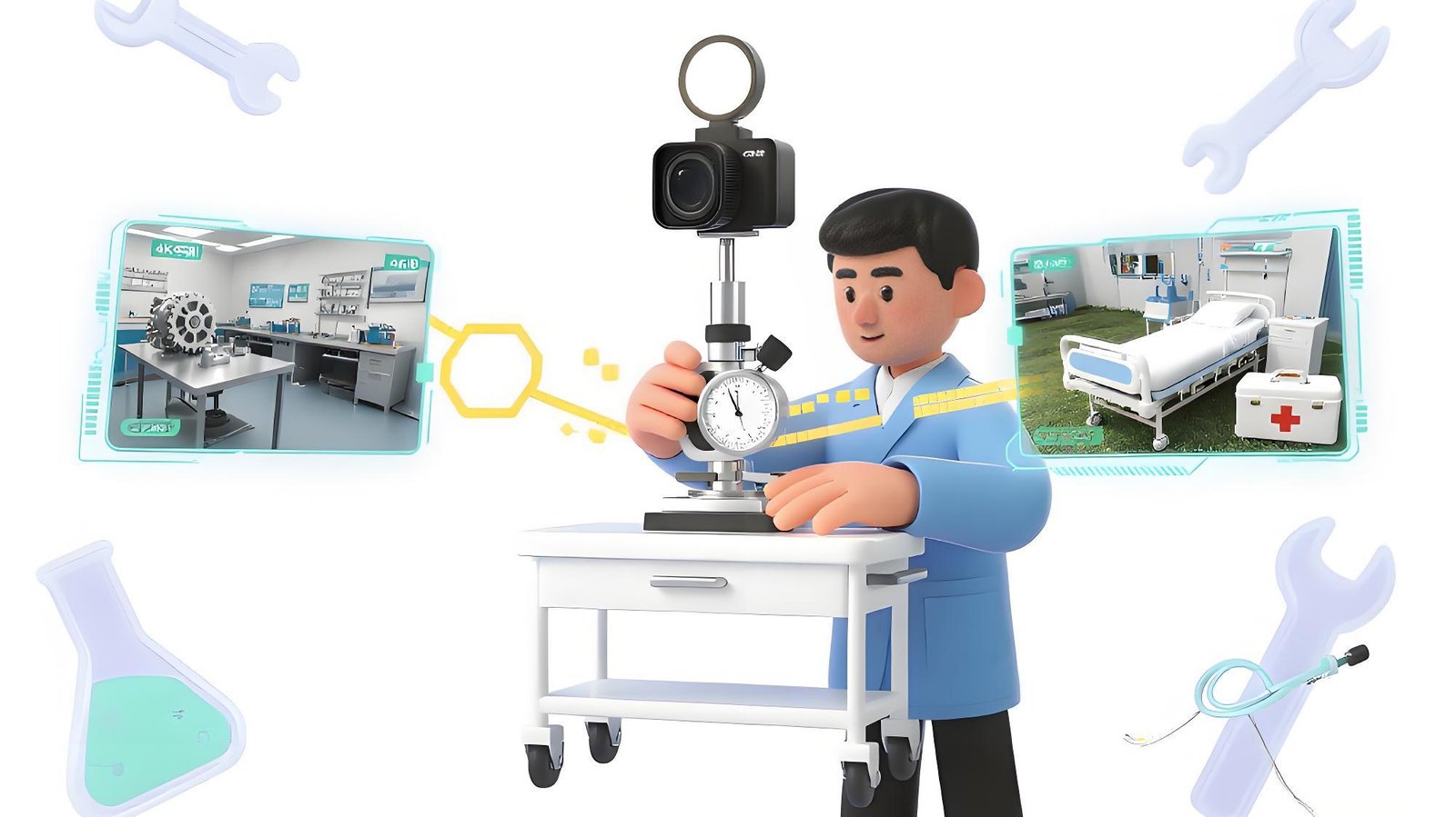 A mobile cart designed for lab and practical training—capturing precise operations and enabling interactive instruction.