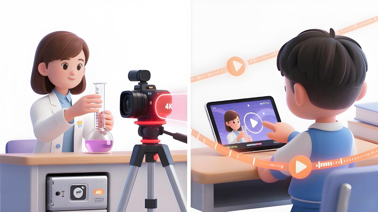 Record instructor demonstrations for student review to reduce repeated teaching, and capture student operations to restore procedural details—improving learning quality.