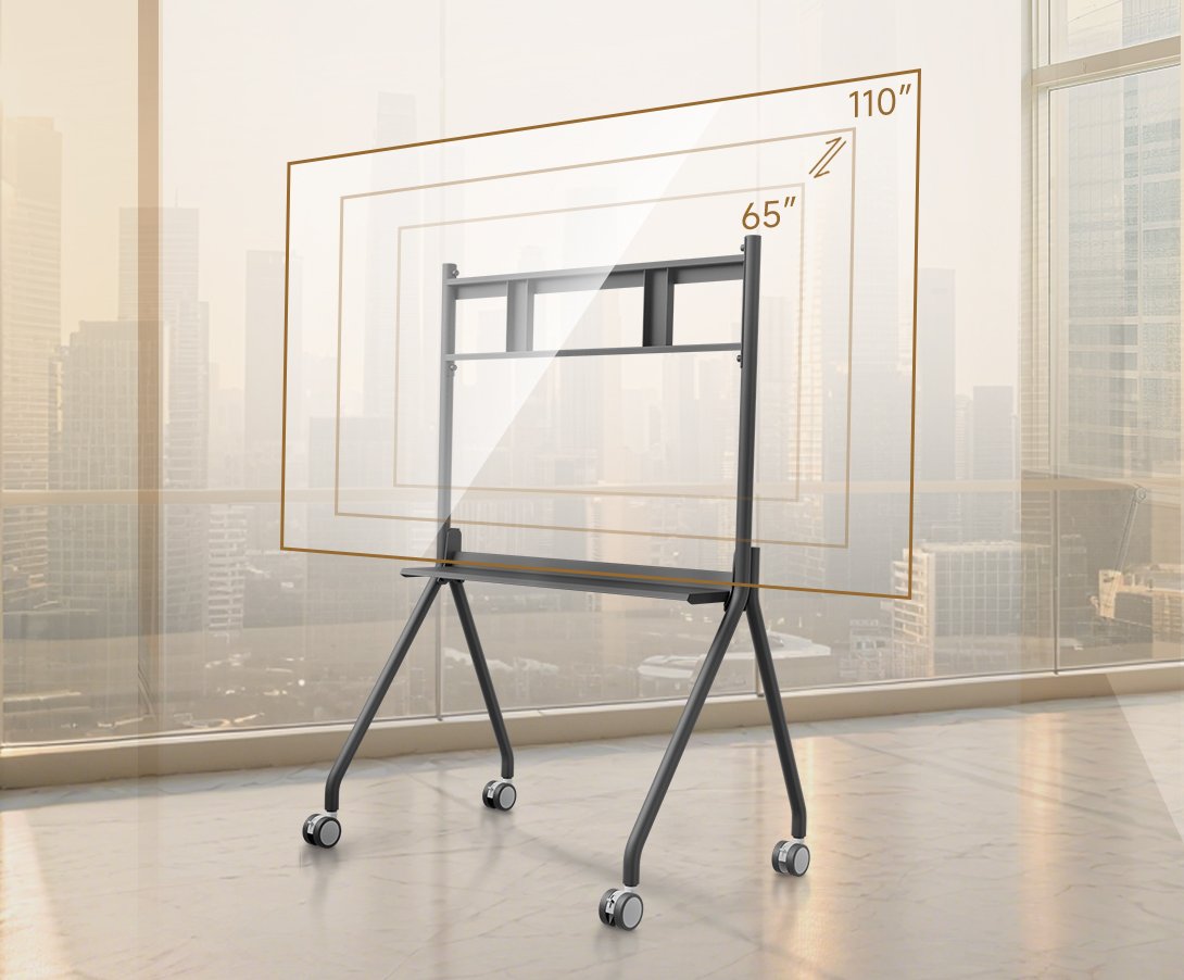 55″65″75″85″98″110″|Height Adjustable|360° Rotating Wheels