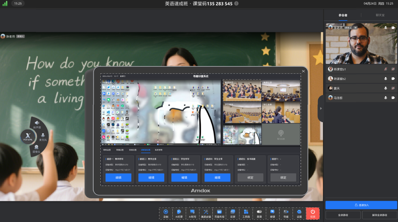 It not only uses intelligent noise reduction and beauty/background blur audio-visual technologies to ensure clear and smooth audio-video interaction, but also optimizes the teacher’s on-screen appearance, allowing teachers to focus on teaching itself.